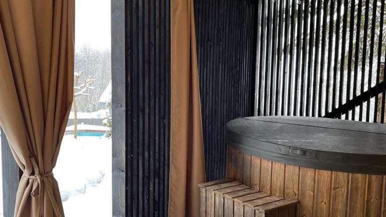 Das Domek w dolinie bietet einen eigenen Pool, in dem Sie sich an warmen Tagen erfrischen können. Für Kinder gibt es einen Spielplatz, auf dem sie sich austoben können. In der Umgebung können Sie Wandern, Skifahren, Angeln und Radfahren. Der Garten des Ferienhauses lädt zum Entspannen ein und bietet Grillmöglichkeiten für gesellige Abende im Freien.