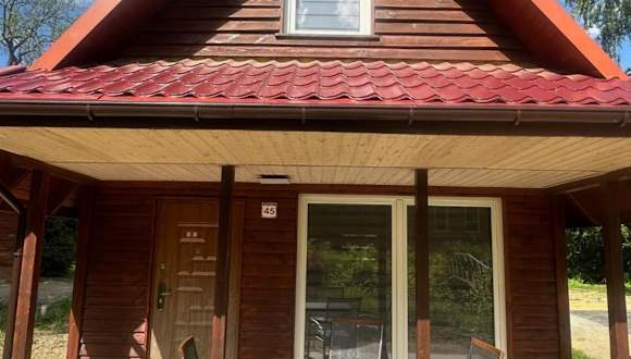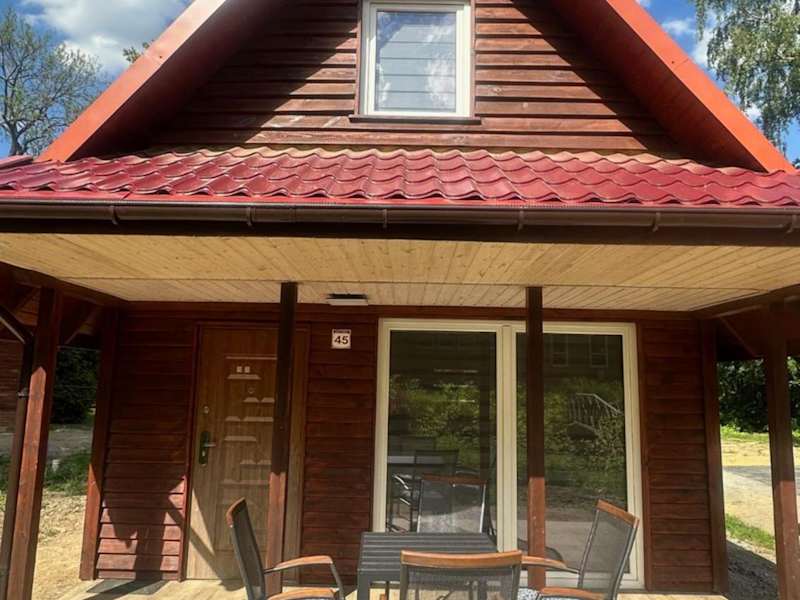 Die Unterkunft Domek w Górach Opawskich nad Złotym Potokiem NR 45 bietet eine klimatisierte Innenausstattung und umfasst ein Ferienhaus mit Zugang zu einer Terrasse.