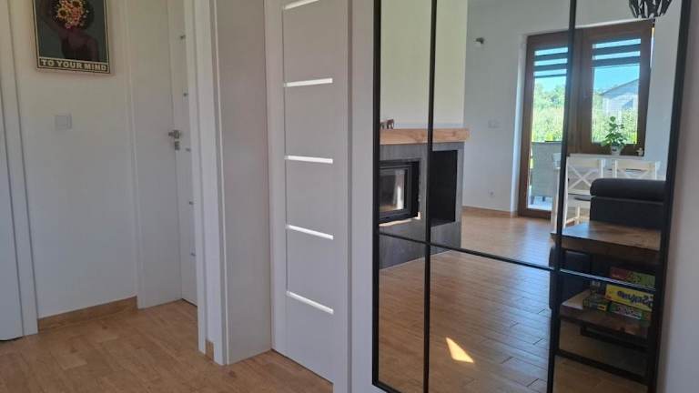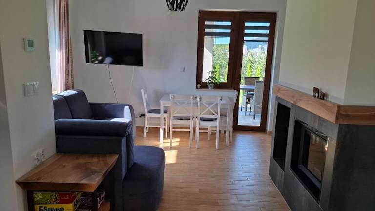 Domek wśród Jabłonek bietet Übernachtungsmöglichkeiten in einem Ferienhaus mit kostenlosem WLAN und einem Flachbild-TV. Die Unterkunft umfasst 2 Schlafzimmer, ein Wohnzimmer sowie ein Badezimmer mit Haartrockner und Dusche. Zusätzliche Annehmlichkeiten sind eine Terrasse und kostenlose Privatparkplätze.