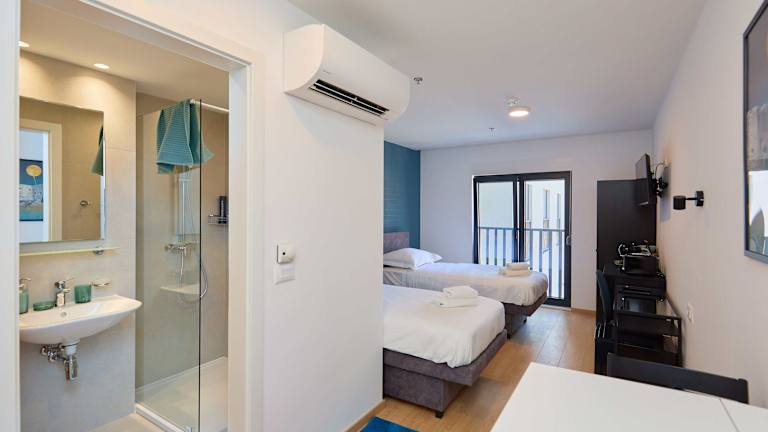 Jede Wohneinheit in der DOMINIUM CITY SUITES verfügt über ein eigenes Badezimmer mit Dusche, Klimaanlage, Flachbild-TV sowie Minibar.
