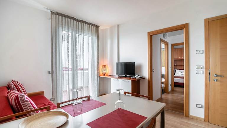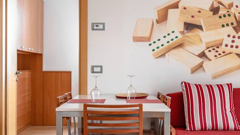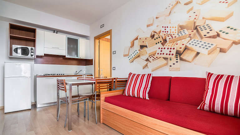 Die geräumigen Suiten im Domino Suite Hotel Jesolo sind modern und komfortabel eingerichtet. Jede Suite verfügt über eine voll ausgestattete Küche, Klimaanlage und einen Flachbild-Sat-TV. Ein Balkon bietet Ihnen die Möglichkeit, die frische Luft und die Aussicht zu genießen.