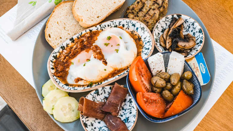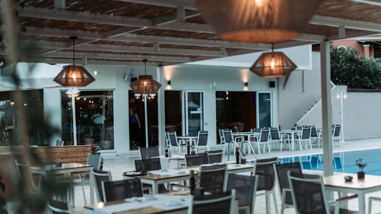 Ein Frühstück wird angeboten und beinhaltet à la carte, kontinentale sowie vegetarische Optionen. In dem Restaurant werden griechische und mediterrane Gerichte serviert, zudem sind auf Anfrage vegetarische, milchfreie und vegane Optionen erhältlich. Es gibt auch eine Snackbar und Möglichkeiten für spezielle Ernährungsbedürfnisse. Optionen für Essenslieferungen in die Unterkunft sind verfügbar.