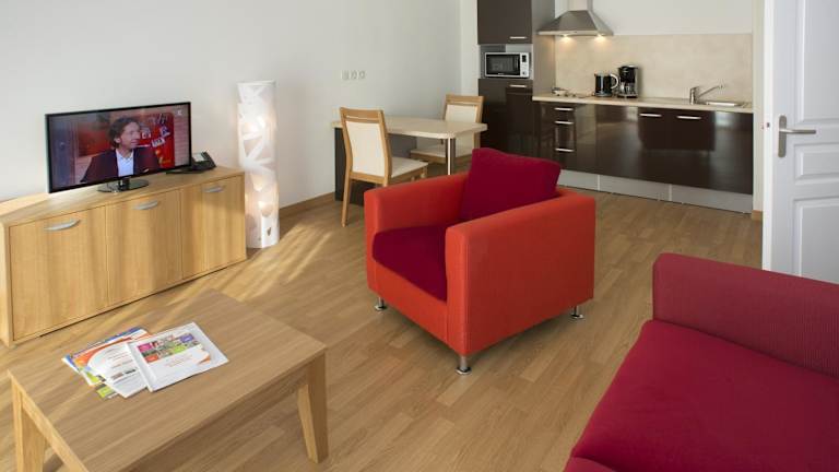 Die Apartments im Domitys Les Cigales du Lubéron sind komfortabel und zur Selbstverpflegung ausgestattet. Jedes Apartment verfügt über einen Balkon, einen gemütlichen Sitzbereich mit einem Sofa und einen Flachbild-TV. Ein Ankleidezimmer und ein komplett ausgestattetes Bad mit Bademantel, Hausschuhen und kostenfreien Pflegeprodukten sind ebenfalls vorhanden. Die gut ausgestattete Küche ermöglicht es Ihnen, Ihre eigenen Mahlzeiten zuzubereiten und das kontinentale Frühstück wird entweder in der Bar der Unterkunft oder in Ihrem Apartment serviert.
