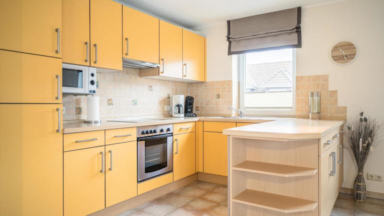 Die Ferienwohnung bietet 2 Schlafzimmer, einen Fernseher und eine voll ausgestattete Küche. Diese Küche umfasst einen Kühlschrank, einen Geschirrspüler, eine Waschmaschine, einen Ofen und eine Mikrowelle.