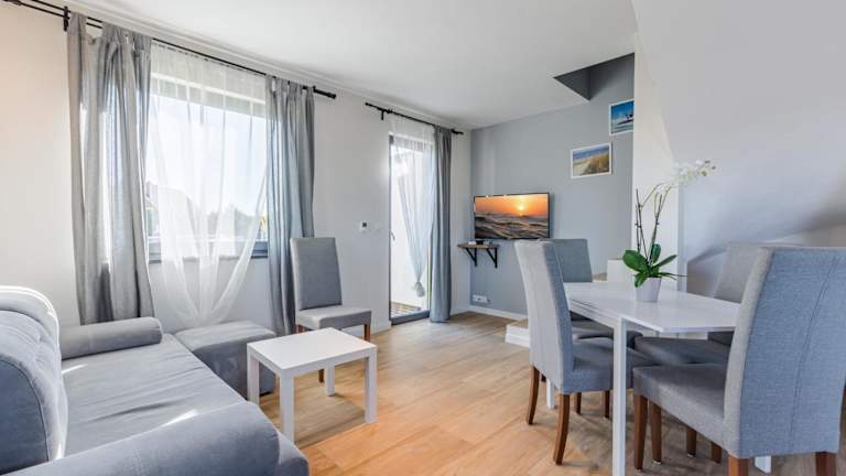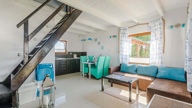 Das Domki Plaża liegt in Władysławowo in der Region Pommern. Der Strand Wladyslawowo 4 ist nur 2,3 km entfernt und bietet eine wunderschöne Kulisse für entspannte Tage am Meer. In der Umgebung gibt es zahlreiche Möglichkeiten zum Wandern und Radfahren, um die malerische Landschaft zu erkunden. Der Strand Cetniewo ist ebenfalls in der Nähe und lädt zu weiteren Aktivitäten am Wasser ein. Der Lech-Wałęsa-Flughafen Danzig ist nur 60 km entfernt und bietet eine gute Anbindung an die Unterkunft.