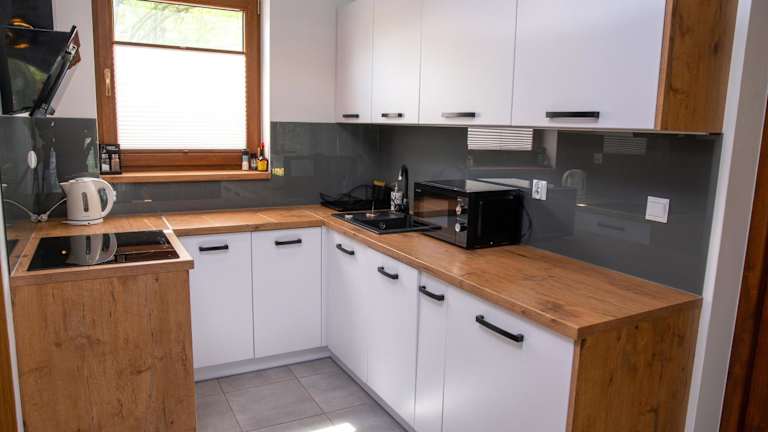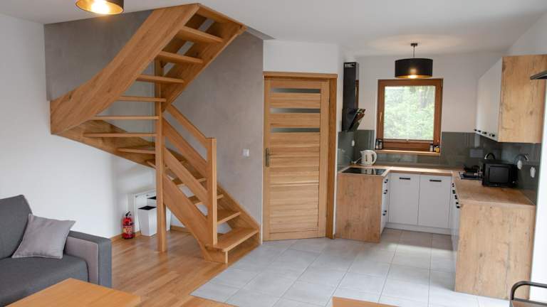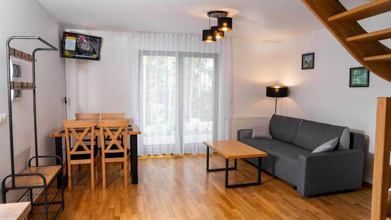 Die Wohneinheiten im Domki Łowisko Wieniec sind modern und komfortabel eingerichtet. Jedes Cottage verfügt über eine voll ausgestattete Küchenzeile mit einem Kühlschrank, eine gemütliche Sitzecke mit einem Schlafsofa und einem Flachbild-TV sowie ein eigenes Bad. Für zusätzlichen Komfort sind ein Geschirrspüler, eine Mikrowelle, ein Kochfeld und ein Wasserkocher vorhanden. WLAN und Privatparkplätze stehen den Gästen kostenfrei zur Verfügung.