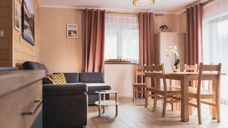 Im Domki Pod Lasem Podhale steht Ihnen ein Garten mit Grillmöglichkeiten zur Verfügung. Hier können Sie entspannte Abende verbringen und leckeres Essen zubereiten. Alternativ können Sie auch in der voll ausgestatteten Küche in Ihrem Ferienhaus kochen. In der näheren Umgebung finden Sie auch verschiedene Restaurants und Cafés, in denen Sie regionale polnische Spezialitäten genießen können.
