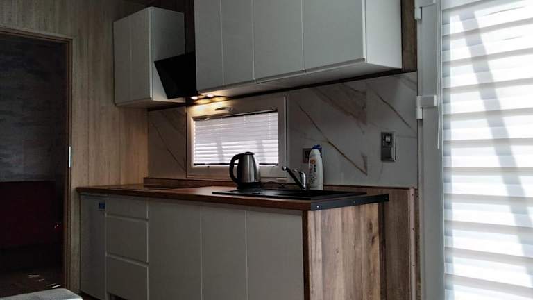 Im Ferienpark gibt es keine Restaurants, aber in der Nähe gibt es viele Möglichkeiten, lokale Küche zu genießen. In den Wohneinheiten können Sie Ihre eigenen Mahlzeiten zubereiten und den Blick auf den See genießen.