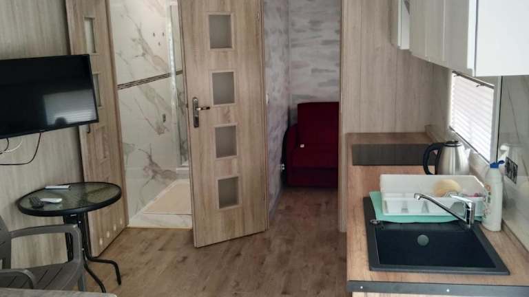 Jede Wohneinheit im Domki u Anny in Gudowo verfügt über eine voll ausgestattete Küchenzeile mit einem Kühlschrank, ein Wohnzimmer mit einem Schlafsofa und einem Flachbild-TV sowie ein eigenes Bad. Ein Kochfeld und ein Wasserkocher sind ebenfalls vorhanden. Die Wohneinheiten sind geräumig und bieten ausreichend Platz für eine Familie oder eine Gruppe von Freunden.