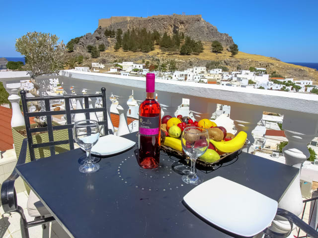 Das Domna Studios liegt in der charmanten Ortschaft Lindos und bietet Ihnen eine ideale Lage gegenüber der Akropolis. In nur 2 Gehminuten erreichen Sie verschiedene Tavernen, Café-Bars und Geschäfte, in denen Sie die lokale Küche und das Einkaufserlebnis genießen können. Der Sandstrand ist ebenfalls nur 5 Gehminuten entfernt, so dass Sie die Schönheit der Ägäis in unmittelbarer Nähe erleben können. Die Stadt Rhodos ist ca. 45 km entfernt und bietet weitere Sehenswürdigkeiten und Aktivitäten.
