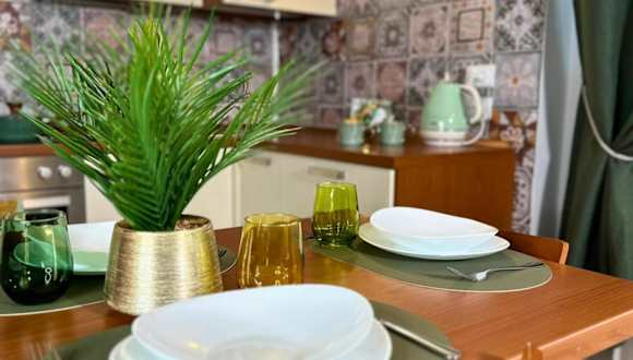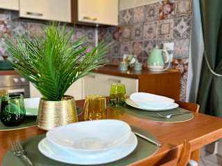 Die Ferienwohnung umfasst ein Schlafzimmer und ein Wohnzimmer. Zudem ist eine voll ausgestattete Küche vorhanden, die mit einem Kühlschrank und einem Wasserkocher ausgestattet ist. Das Badezimmer verfügt über ein Bidet sowie eine Dusche. Handtücher und Bettwäsche werden bereitgestellt.