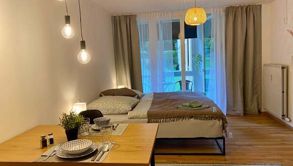 Die Wohnung umfasst ein Schlafzimmer und eine Küchenzeile, die mit einem Kühlschrank und einem Geschirrspüler ausgestattet ist. Das Badezimmer ist mit einer Dusche und einem Haartrockner versehen. Handtücher und Bettwäsche werden bereitgestellt. Zudem sind Allergiker freundliche Zimmer verfügbar.