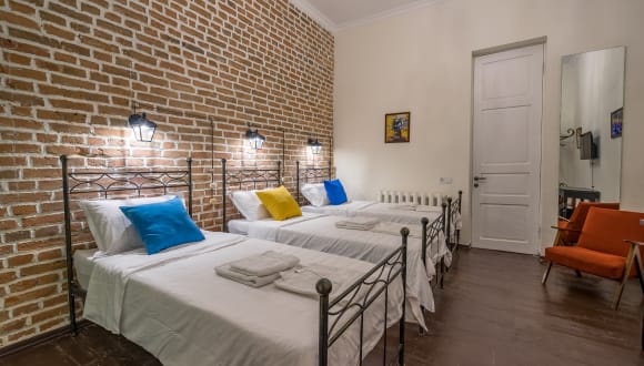 If you want to feel the real heart of Historic part of the city and experience the Old Tbilisi, Doors Meidan Design Hotel is the right place to stay. The property, which is in the middle of old Tbilisi was recently opened to host its guests. The architectures and designers did their best to keep the authenticity of the building and interior. Historic Meidan of old Tbilisi is 50 meters from the Doors of the Hotel while, Freedom Square and Rustaveli Avenue are 7 minutes walk. In the neighborhood you will find famous Sharden and Erekle streets with different restaurants and cafes and historic Botanical garden of Tbilisi. The popular historic natural sulfur spring (discovered back in 5th century AD by King David Gorgasali) baths of Tbilisi are also located at 5 minute walk from the hotel. Tbilisi International airport is 14km from the hotel. All rooms in the hotel have breathtaking views of old Tbilisi and Narikala fortress. All rooms are decorated with authentic and unique Georgian traditional elements. In the hotel you will be able to enjoy an exceptional collection of photos showing the life of 19th century. There is a natural wood flooring throughout the whole property. Each room in the hotel is equipped with air conditioning and flat TV with satellite channels. There is a free Wi-Fi throughout the whole premises. Private bathroom with hairdryer, fridge, kettle and an individual safety box is presented in every room. For your comfort, you will find bathrobes, slippers and free toiletries. This property also has one of the best-rated locations in Tbilisi and is the favorite part of the city for the visitors according to independent reviews. You will find a 24-hour front desk at the property. We will do our best to make your stay in Tbilisi a really good memory of life.