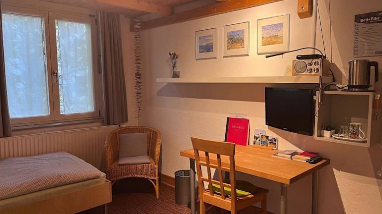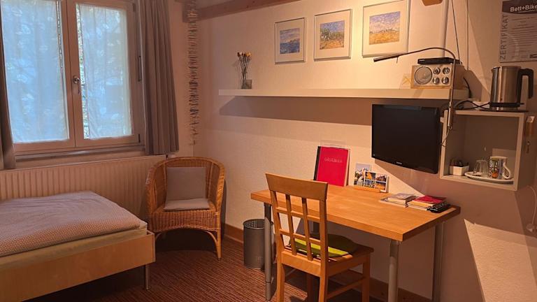 Das Privatzimmer ist mit einem TV ausgestattet. Handtücher und Bettwäsche werden den Gästen zur Verfügung gestellt.