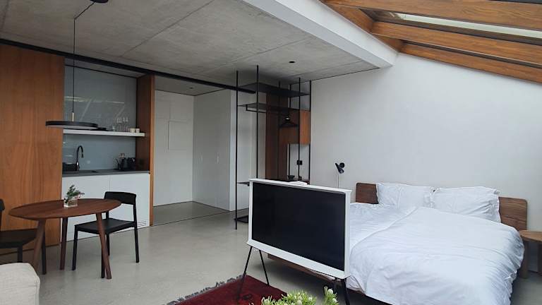 Die Unterkünfte sind mit Fliesenböden ausgestattet und beinhalten einen satellitengestützten Flachbild-TV, einen Safe sowie eine voll ausgestattete Küche mit Kühlschrank. Jedes Zimmer hat ein eigenes Badezimmer mit Dusche. Einige Einheiten bieten eine Terrasse oder einen Balkon mit Ausblick auf die Stadt oder die Berge.