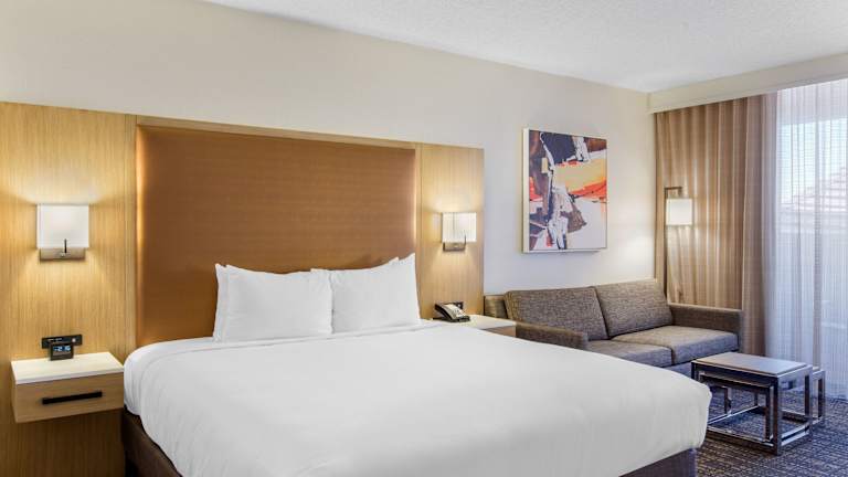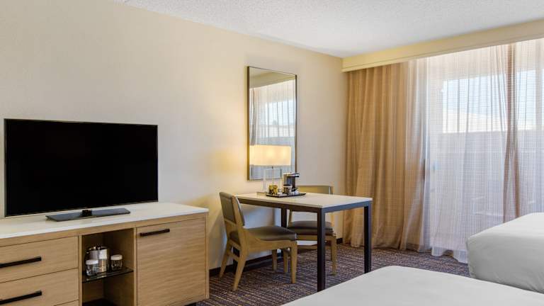 Das DoubleTree by Hilton Golf Resort Palm Springs ist ein Resort, das perfekt für Golfliebhaber und Wellnessbegeisterte geeignet ist. Mit einem 27-Loch-Championship-Golfplatz und einem erstklassigen Wellnessbereich bietet es alle Annehmlichkeiten für einen entspannten Aufenthalt. Die schallisolierten Zimmer sind komfortabel und verfügen über kostenloses WLAN sowie einen Balkon oder eine Terrasse mit atemberaubendem Blick auf den See, die Golfplätze und das Gebirge San Jacinto. Genießen Sie Ihr Frühstück im Speisesaal oder auf Ihrem Zimmer und lassen Sie sich zum Mittagessen im Restaurant Polanco Kitchen von der südkalifornischen Baja-Küche verwöhnen. Abends können Sie in der Mira Bar bei Cocktails und Craft-Bier aus der Region entspannen. Das Resort bietet auch ein Businesscenter, ein Fitnesscenter und verschiedene Souvenirläden. Entdecken Sie die Umgebung und besuchen Sie die Palm Springs Aerial Tramway oder den Knots Soak City Water Park. Der Flughafen Palm Springs ist nur 9 km entfernt und der Joshua Tree National Park ist in weniger als einer Stunde Fahrt zu erreichen.