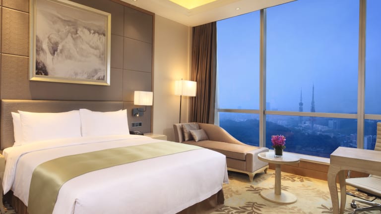 Das DoubleTree by Hilton Guangzhou bietet 301 komfortable Zimmer auf 41 Etagen. Die Zimmer sind klimatisiert und verfügen über einen Flachbild-Sat-TV, einen Wasserkocher und ein eigenes Badezimmer mit Dusche. Zur Ausstattung der Zimmer gehören auch ein Schreibtisch, ein Safe und ein Bügeleisen/-brett. WLAN ist in den öffentlichen Bereichen des Hotels kostenlos verfügbar.