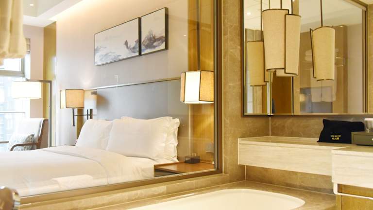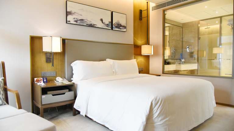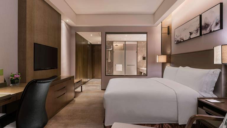 Die Zimmer im DoubleTree by Hilton Hotel Shiyan sind komfortabel eingerichtet und verfügen über eine Minibar, um Ihren Aufenthalt noch angenehmer zu gestalten.