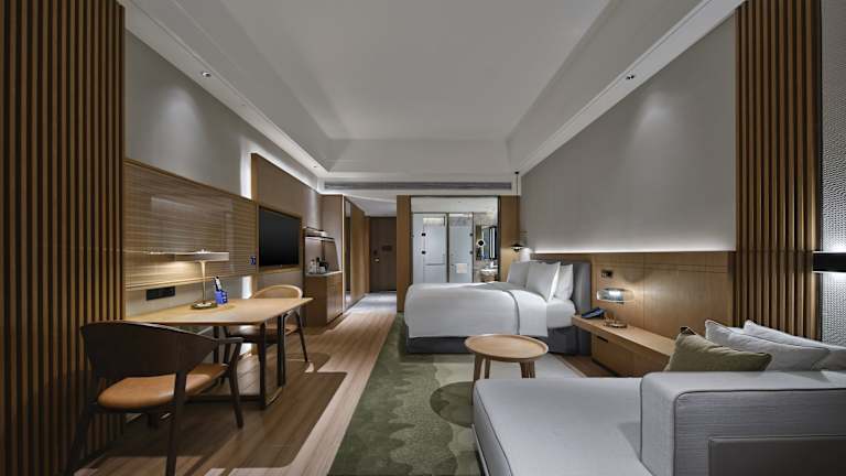 Das Doubletree By Hilton Lingshui Hot Spring bietet klimatisierte Zimmer, die mit modernen Annehmlichkeiten ausgestattet sind, um Ihren Aufenthalt so angenehm wie möglich zu gestalten. Jedes Zimmer verfügt über einen Safe, einen TV und einige Zimmer bieten sogar einen Balkon, von dem aus Sie die Umgebung genießen können.