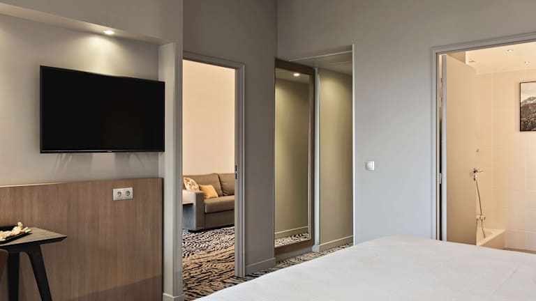 Die Zimmer sind mit Klimaanlage, Heizung und kostenlosem WLAN ausgestattet. Zur Grundausstattung gehören ein Flachbild-TV, ein Telefon, ein Safe sowie ein Badezimmer mit Dusche, Haartrockner und Bademänteln. Viele Zimmer verfügen über einen Balkon, und rollstuhlgerechte Zimmer sind ebenfalls verfügbar. Bei Bedarf können Zustellbetten angefordert werden.