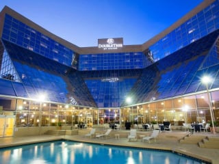 Das DoubleTree by Hilton Orlando Airport Hotel befindet sich nur 5 Fahrminuten vom internationalen Flughafen Orlando entfernt. Die Lage des Hotels ermöglicht eine bequeme Anreise für Reisende. In der Umgebung finden Sie das Walt Disney World Resort und das Orange County Convention Center, die jeweils in 15 Fahrminuten erreichbar sind. Die Universal Studios befinden sich ebenfalls in der Nähe, etwa 20 Meilen entfernt.