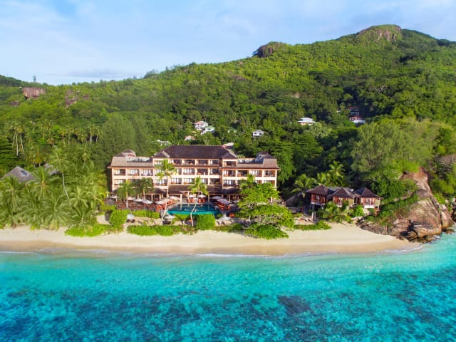 Begin your stay at DoubleTree by Hilton Seychelles - Allamanda Resort and Spa with a warm welcome. Ideally located in the south of Mahé, this resort in Seychelles is located in a charming four-star resort on the main island of the Seychelles. Enjoy the 20-minute scenic ride along the coastal beach road from the Pointe Larue International airport to Anse Forbans. The property provides a superb beach, large granite boulders and is complimented by the surrounding mountain's lush tropical foliage. Unwind in a spacious guest room or suite at this Seychelles resort. Each room feature stylish decor and is rich in comforts where you can enjoy modern amenities such as LCD TVs and complimentary high-speed internet access. Choose from ocean view rooms with a large balcony or spacious deluxe ocean view rooms, offering special amenities including a relaxing whirlpool, comfortable chairs and sofa. Enjoy breakfast, lunch & a la carte international dinner at Les Palms Restaurant and take in the breathtaking Indian Ocean views from the terrace. Oceanview bar is the perfect place for some cocktails and premium spirits during your stay. Stay active during your stay and work out in the fitness center with a range of high-tech equipment including treadmills, weight machines and exercise stations. For a more relaxing activity, take a dip in the sparkling outdoor swimming pool or indulge in a luxurious treatment at the hotel spa. Corporate guests will appreciate our fully equipped business center, offering complimentary high-speed internet access and a variety of efficient equipment for your convenience.