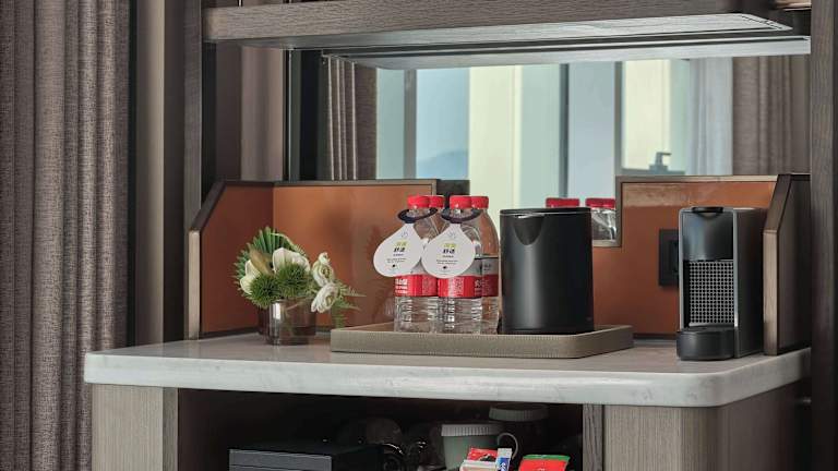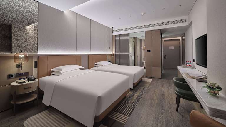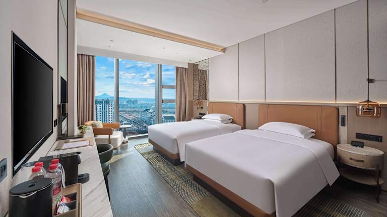 Die klimatisierten Zimmer im Doubletree By Hilton Yanji sind mit einem Schreibtisch, einem Safe, einem Flachbild-TV und einem eigenen Badezimmer mit Dusche ausgestattet. Zudem steht den Gästen ein Kühlschrank zur Verfügung.