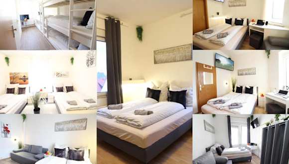 Die Zimmer sind ausgestattet mit Boxspringbetten, einem Schreibtisch, einem TV, einem Wasserkocher und einem eigenen Badezimmer mit Dusche und Haartrockner. Einige Zimmer verfügen über eine Küche mit Mikrowelle. Alle Gästezimmer sind mit einem Kühlschrank ausgestattet.