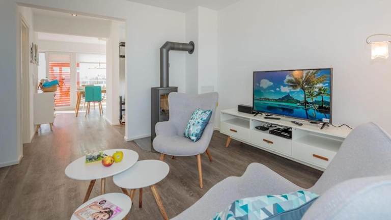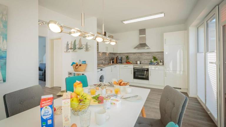 Die Ferienwohnung verfügt über zwei Schlafzimmer, ein Wohnzimmer und eine gut ausgestattete Küche, die mit einem Kühlschrank und einem Geschirrspüler ausgestattet ist. Zur Unterhaltung stehen ein TV und ein DVD-Player zur Verfügung.
