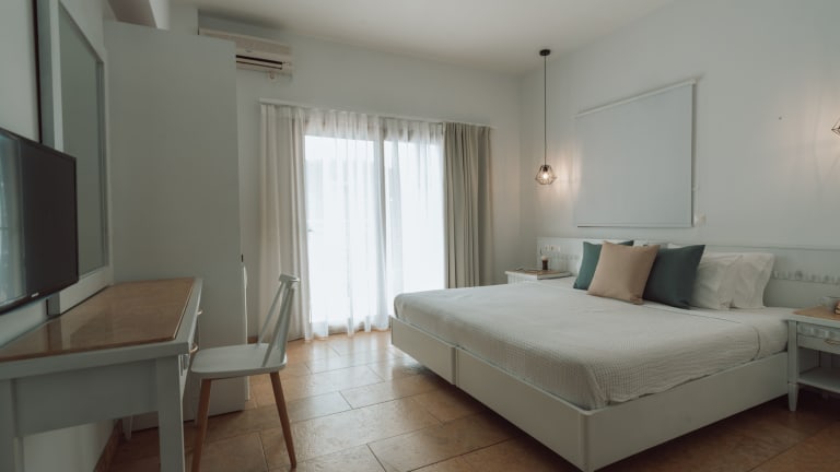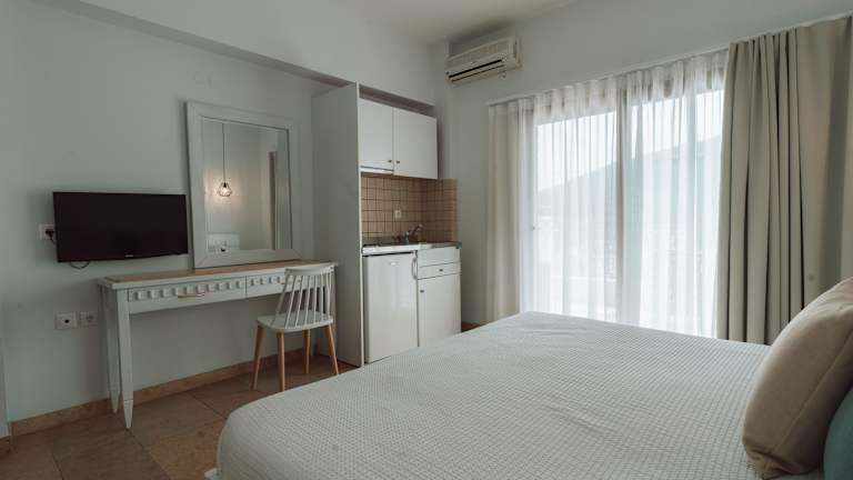 Die Zimmer im Dracos Hotel sind klimatisiert und bieten ein Doppel- und ein Sofabett sowie Zustellbetten auf Anfrage. Zur Ausstattung gehören ein Safe, eine Minibar, ein Telefon, ein TV-Gerät und kostenfreies WLAN. Die Badezimmer sind mit Haartrocknern und Telefonen ausgestattet und bestechen durch Marmor aus Marokko, Indien und Griechenland.