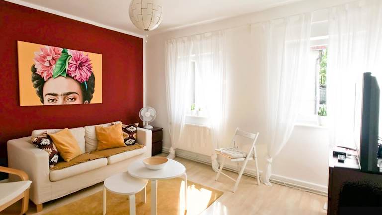 Dream Green Apartment 'Frida' bietet eine moderne Ferienwohnung, die eine angenehme und ruhige Atmosphäre ausstrahlt. Die Unterkunft ist mit kostenlosem WLAN ausgestattet und bietet verschiedene Annehmlichkeiten für einen komfortablen Aufenthalt.