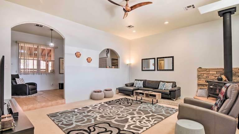 Das Dreamcatcher Cliffs Home Near Dtwn Kanab bietet geräumige und komfortable Unterkünfte für Ihren Aufenthalt. Das klimatisierte Ferienhaus verfügt über 3 Schlafzimmer, in denen Sie sich nach einem ereignisreichen Tag erholen können. Das Haus ist mit Kabel-TV ausgestattet, damit Sie Ihre Lieblingssendungen und Filme genießen können. Die voll ausgestattete Küche ermöglicht es Ihnen, Ihre eigenen Mahlzeiten zuzubereiten und sich wie zu Hause zu fühlen. Handtücher und Bettwäsche werden gestellt, um Ihren Aufenthalt so bequem wie möglich zu gestalten.