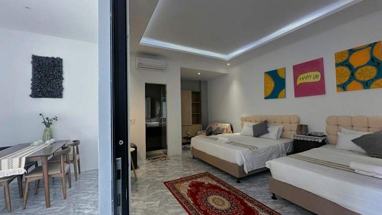 Die Zimmer sind klimatisiert und bieten verschiedene Annehmlichkeiten wie Familienzimmer und Nichtraucherzimmer. Die tägliche Reinigung ist ebenfalls Teil des Angebots.