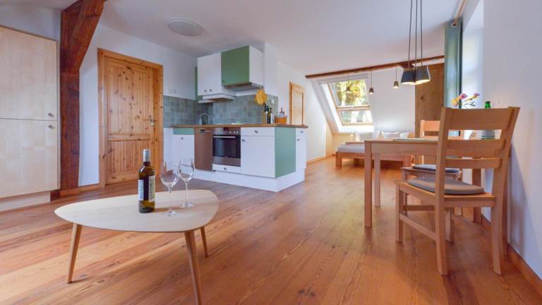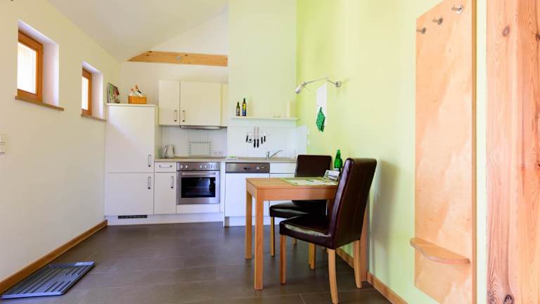 Die Unterkünfte in den Dreigärten Brodowin verfügen über gemütliche Sitzbereiche mit bequemen Sofas und eine voll ausgestattete Küche mit allem, was Sie für die Zubereitung Ihrer Mahlzeiten benötigen. Dazu gehören ein Kühlschrank, ein Geschirrspüler, ein Backofen und ein Kochfeld. So haben Sie die Möglichkeit, Ihre Lieblingsgerichte zu Hause zuzubereiten und Ihren Aufenthalt ganz nach Ihren Wünschen zu gestalten. Kostenloses WLAN steht Ihnen ebenfalls zur Verfügung.