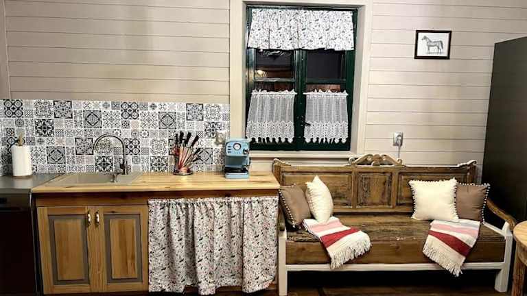 Das Drewniana chata nad stawem in Krasiczyn ist eine klimatisierte Unterkunft, die Ihnen einen komfortablen und erholsamen Aufenthalt bietet. Mit seiner gut ausgestatteten Küche, den drei Schlafzimmern und der Terrasse ist das Chalet ideal für Familien oder Gruppen von Freunden. Profitieren Sie von den Privatparkplätzen und dem kostenfreien WLAN. Entspannen Sie im Garten oder in der Gemeinschaftslounge nach einem aktiven Tag beim Skifahren, Angeln oder Radfahren.