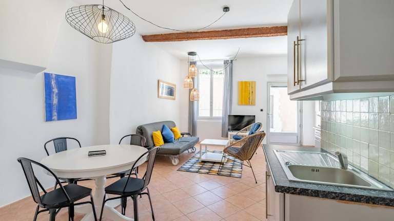 Die Apartments im Hotel Droit au port par Dodo-a-Cassis bieten alles, was Sie für einen angenehmen Aufenthalt benötigen. Jedes Apartment verfügt über ein Schlafzimmer, ein Wohnzimmer und eine voll ausgestattete Küche mit Kühlschrank und Kaffeemaschine. Das Badezimmer ist mit einer Dusche und einem Haartrockner ausgestattet. Handtücher und Bettwäsche können gegen Aufpreis zur Verfügung gestellt werden. Kostenloses WLAN und ein Flachbild-TV sorgen für zusätzlichen Komfort.