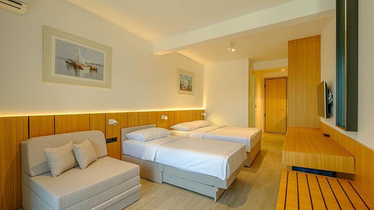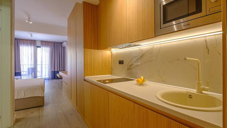 Die Zimmer sind mit einem Balkon, Klimaanlage und einem Flachbild-TV ausgestattet. Ein eigenes Badezimmer mit Dusche und Haartrockner ist vorhanden. Zur Ausstattung gehören außerdem ein Kühlschrank, ein Geschirrspüler, eine Mikrowelle sowie ein Wasserkocher.