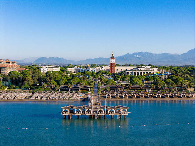 Das exklusive Luxushotel befindet sich direkt am feinen Sandstrand der Kundu Region, etwa 20 km vom Stadtzentrum von Antalya entfernt. Der Flughafen Antalya liegt in einer Entfernung von ca. 15 km, was eine bequeme Anreise ermöglicht.