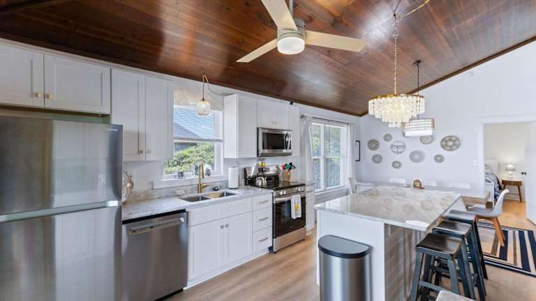 Duckin' Out ist ein Ferienhaus, das über einen Balkon mit Blick auf das Meer verfügt. Die klimatisierte Unterkunft bietet alle Annehmlichkeiten für einen komfortablen Aufenthalt und umfasst vier Schlafzimmer sowie zwei Bäder.