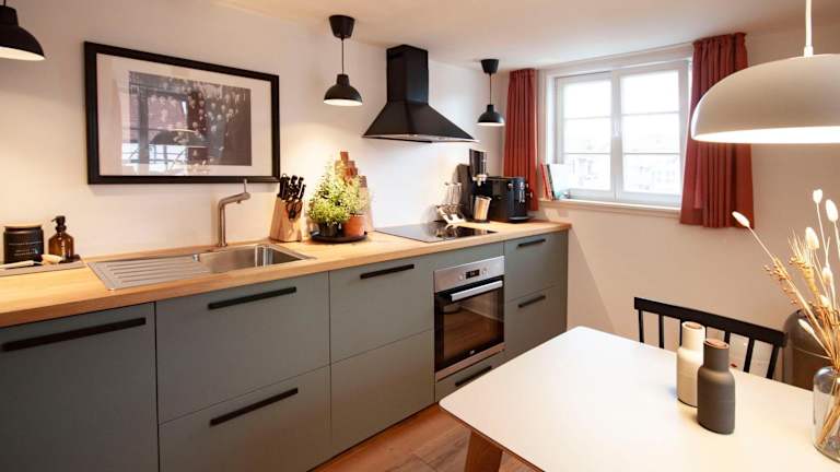 Die Ferienwohnung umfasst drei Schlafzimmer und ist mit einem Flachbild-TV ausgestattet. Eine voll ausgestattete Küche ermöglicht den Gästen die Nutzung von modernen Geräten wie einem Kühlschrank, Geschirrspüler, Waschmaschine, Ofen und Herdplatte. Handtücher und Bettwäsche werden gestellt.