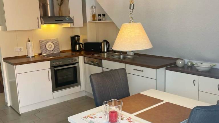Die Ferienwohnung verfügt über 1 Schlafzimmer, eine Küche mit Kühlschrank und Ofen sowie ein Badezimmer mit Dusche, Haartrockner und Waschmaschine. Weiterhin ist ein Fernseher vorhanden.