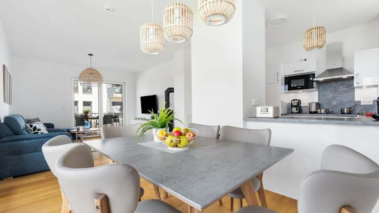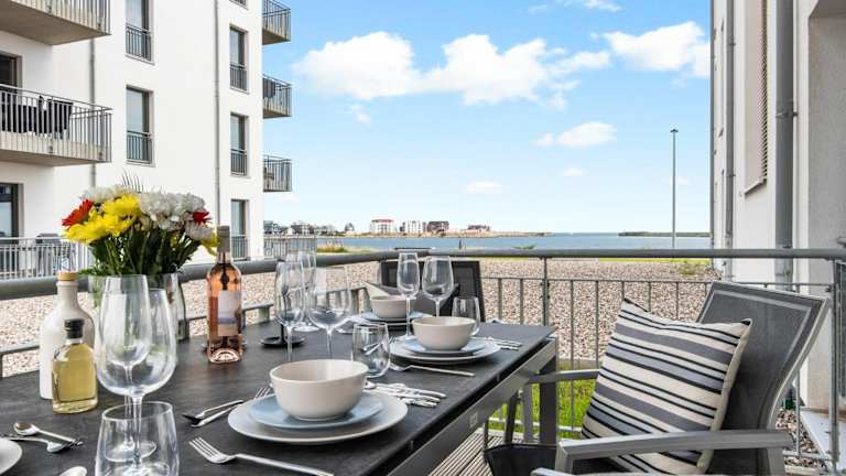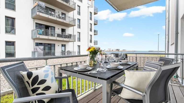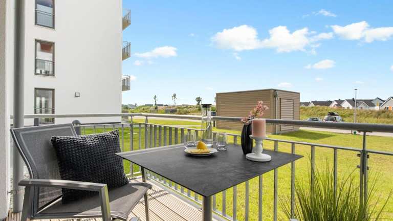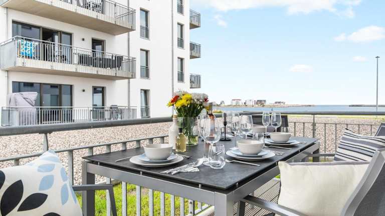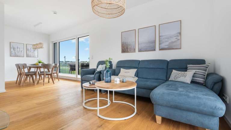 Dünenmeer bietet eine Ferienwohnung im Erdgeschoss mit Balkon und Meerblick. Einrichtungen umfassen ein Restaurant, eine Bar sowie verschiedene Serviceangebote.