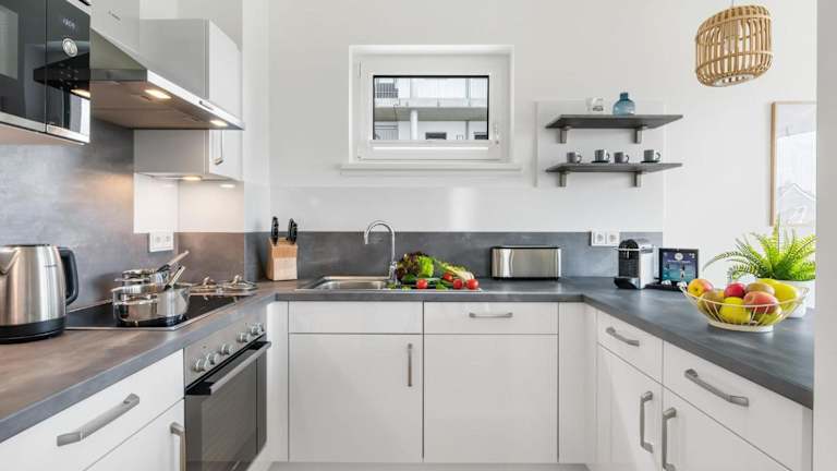Die Ferienwohnung verfügt über zwei Schlafzimmer, eine gut ausgestattete Küche mit Kühlschrank und Geschirrspüler, ein Wohnzimmer sowie einen Fernseher. WLAN ist in der gesamten Unterkunft verfügbar.