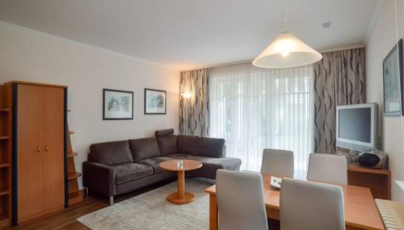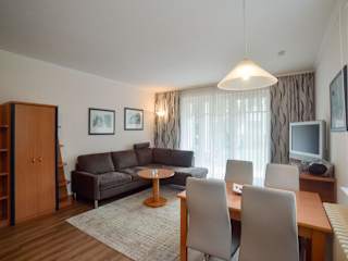 Dünenpark Binz - Komfort Ferienwohnung mit 1 Schlafzimmer und Terrasse im Erdgeschoss 219 bietet eine komfortable Ferienunterkunft mit einer Terrasse. Die Unterkunft ist vollständig ausgestattet mit einem Schlafzimmer, einem Wohnzimmer und einer gut ausgestatteten Küche. Es wird kostenloses WLAN angeboten, zudem ist ein Privatparkplatz vor Ort verfügbar. Objektspezifische Regeln schließen Junggesellen- oder Junggesellinnenabschiede sowie ähnliche Feiern aus.