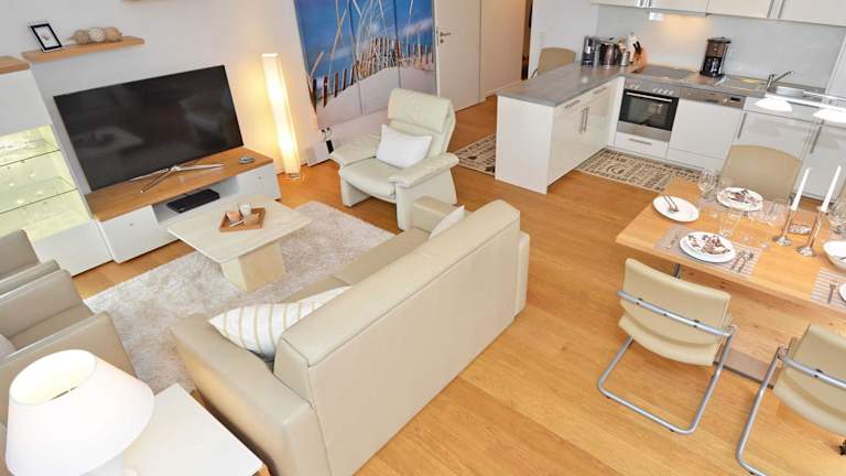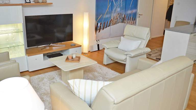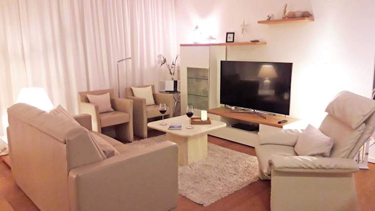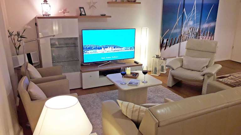 Die Ferienwohnung verfügt über 2 Schlafzimmer, ein Wohnzimmer mit einem Flachbild-TV und Satellitenkanälen, sowie eine voll ausgestattete Küchenzeile mit Kühlschrank und Geschirrspüler. Zudem gibt es 1 Badezimmer, das mit einem Haartrockner ausgestattet ist.