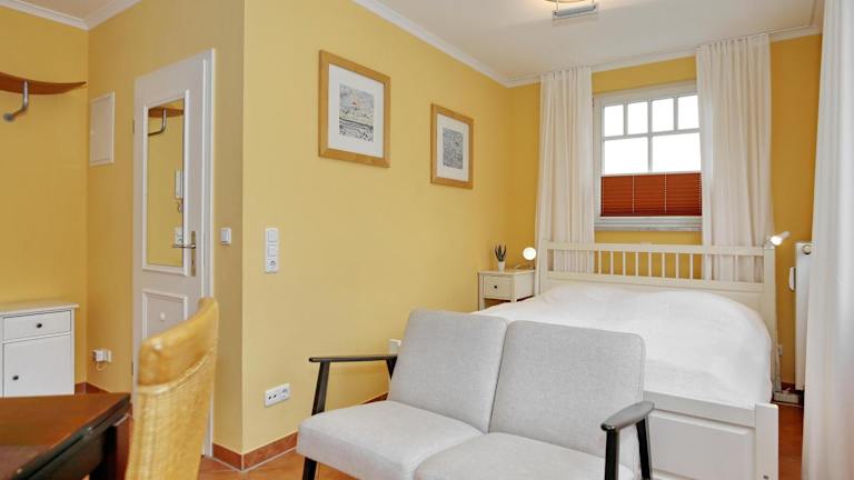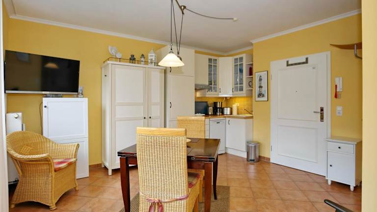 Die Ferienwohnung umfasst 1 Schlafzimmer und ist mit einem TV und einer voll ausgestatteten Küche ausgestattet. Zur Küchenausstattung gehören ein Kühlschrank, Geschirrspüler, Waschmaschine, Mikrowelle und Herdplatte. Bitte beachten Sie, dass Bettwäsche und Handtücher nicht im Preis inbegriffen sind und gegen Gebühr ausgeliehen oder selbst mitgebracht werden können.