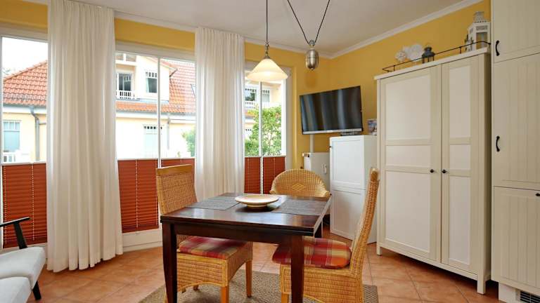 Die Dünenschloss Wohnung 4-11 bietet eine komfortable Ferienunterkunft direkt am Strand. Es handelt sich um eine moderne Wohnung mit Balkon und kostenlosem Privatparkplatz. Annehmlichkeiten wie WLAN sind kostenlos verfügbar. Die Unterkunft hat spezielle Vorgaben für Buchungen und beinhaltet eine Mindestalteranforderung von 18 Jahren für den Check-in sowie eine Regelung, dass keine Feiern wie Junggesellenabschiede gestattet sind. Der nächstgelegene Flughafen, Rostock-Laage, liegt 68 km von der Unterkunft entfernt.