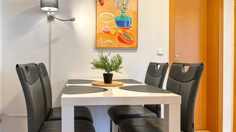 Die Unterkunft verfügt über eine Küche mit einem Kühlschrank und einem Geschirrspüler, jedoch sind keine spezifischen Informationen zu Verpflegungsmöglichkeiten vorhanden.