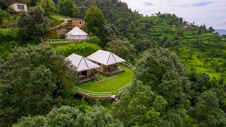 Erleben Sie einen luxuriösen Aufenthalt im DugDug Camps in Bhīm Tāl, das nur 10 km vom Bhimtal See und 31 km vom Naini See entfernt liegt. Dieses einzigartige Zelt bietet Ihnen einen wunderschönen Garten, eine Terrasse und kostenfreies WLAN. Genießen Sie ein kontinentales oder vegetarisches Frühstück und profitieren Sie von kostenfreien Privatparkplätzen. Das DugDug Camps ist der perfekte Ort, um die Schönheit der Umgebung zu erkunden.