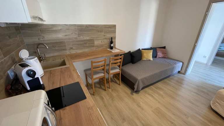 Die Ferienwohnung verfügt über 2 Schlafzimmer, eine Küche mit Kühlschrank und Mikrowelle, einen Flachbild-TV, einen Sitzbereich sowie ein Badezimmer mit Dusche. Handtücher und Bettwäsche sind vorhanden.
